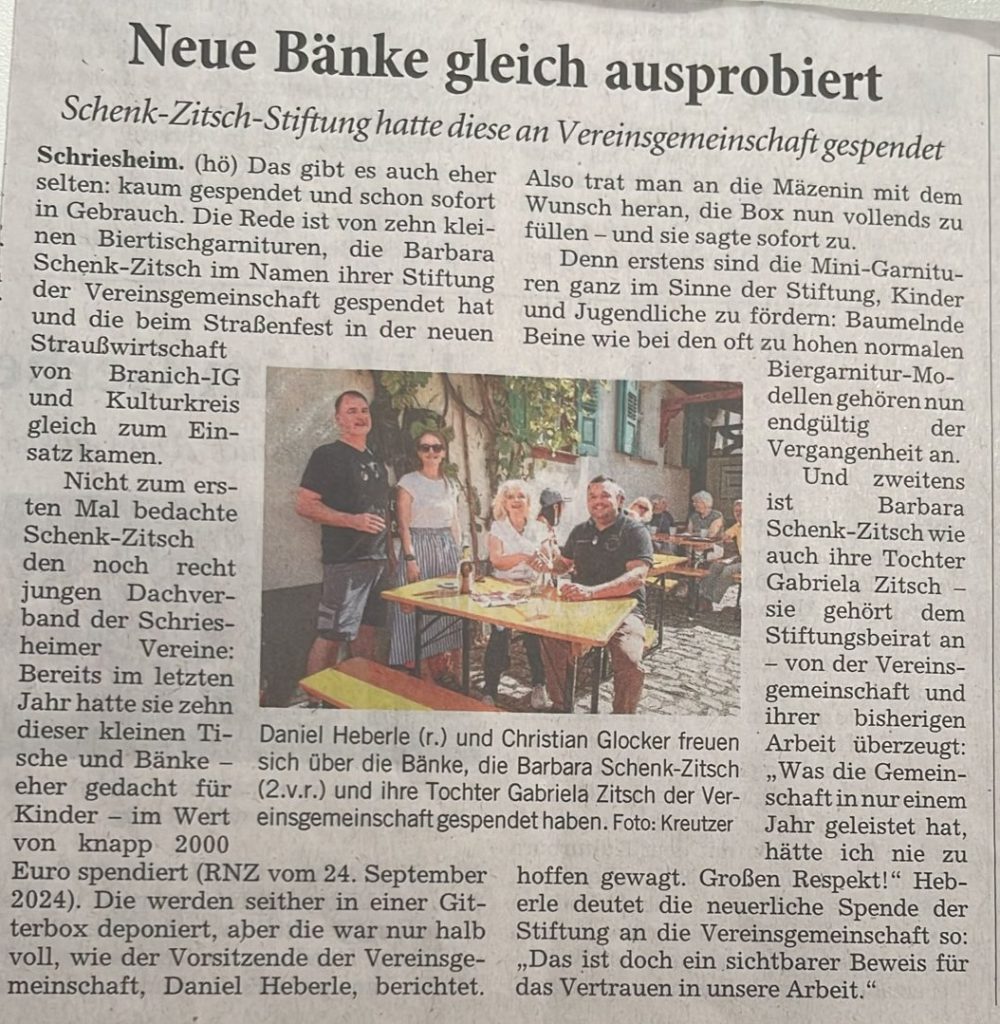 Stiftung spendet Vereinsgemeinschaft zum zweiten Mal Tische und Bänke für Kinder und Jugendliche